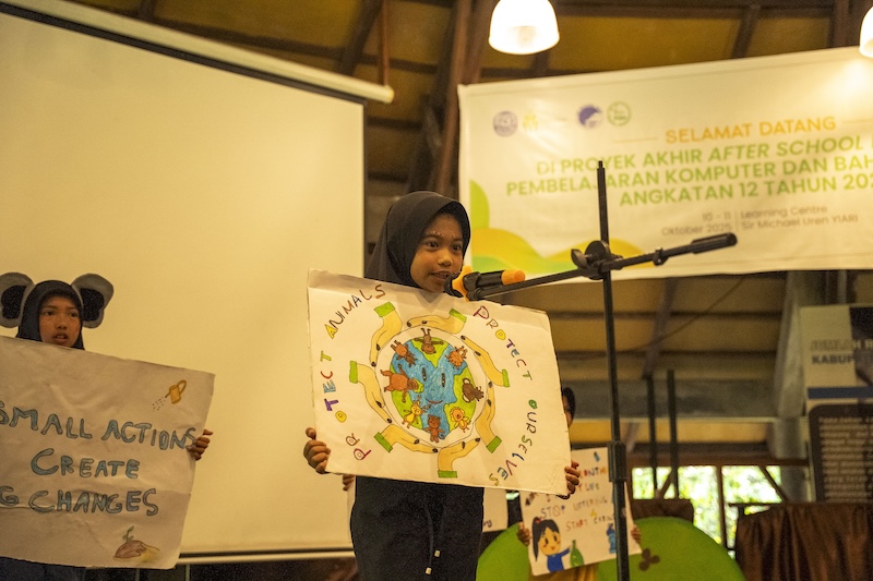 At the end of each learning cycle, students proudly share a final project with their parents and the wider community. They perform English theatre pieces, poetry and dances. They also present posters and multimedia projects. Every performance celebrates love and care for nature and wildlife.